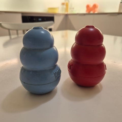Kuvan mukaiset 3kpl 7cm korkuisia pieniä kong leluja. Hyväkuntoisia, ei rikki purtuja. Myydääb settinä.