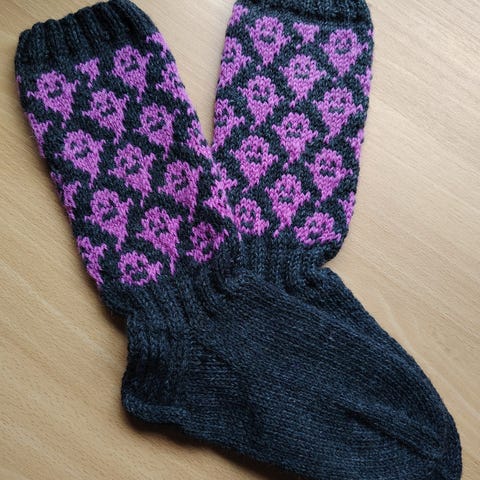 Myydään uudet itsetehdyt villasukat. Väri tummanharmaa/petrooli/valkoinen. Koko noin 38-39.