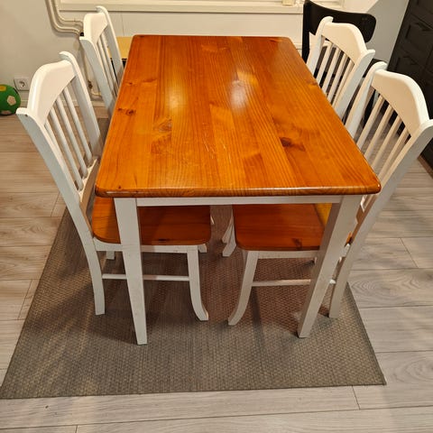 Ruokapöytä ja 4 tuolia.