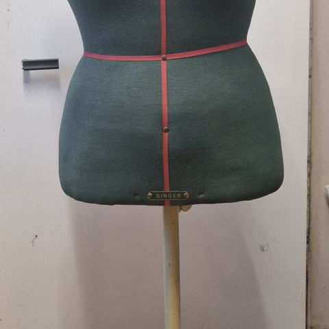 Harvinainen Singer sovitusnukke. Kokonaiskorkeus jalustan kanssa 98cm. Itse torso hartiasta alas 48cm