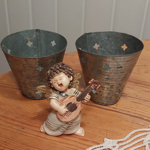 Posliininen kaunis tuoksulyhty/ enkelikoristeella ja tähtitaivaalla. Valkoinen/sininen kultaisilla tähdillä. Yläosassa pieni halkeama, mutta tiivis, jos haluaa laittaa aromaattisia tippoja tuoksua antamaan. Postitus mahdollinen