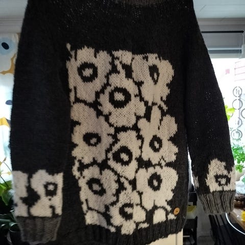 Harmaa Marimekko Kolonni Seireeni villapusero, koko L. Oversize malli