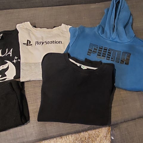 Koko 134-140cm pojalle sopivat vaatteet. Puma huppari koko merkintä suurempi, mutta kaikki käytetty samaan aikaan.