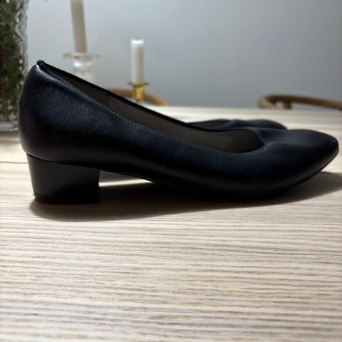 Korkokengät koko 40, mustaa nahkaa. Kengissä on matala korko ja koristeellinen solki edessä. Sisäpohja on pehmustettu. Sopivat käytettäväksi erilaisiin tilaisuuksiin ja arkeen.