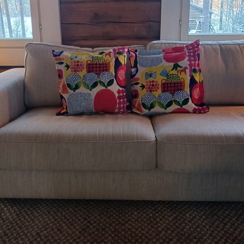 Koristetyynynpäälliset 2kpl, Marimekon Ararat-kuosi, vahvaa puuvillaa, yhteishinta.