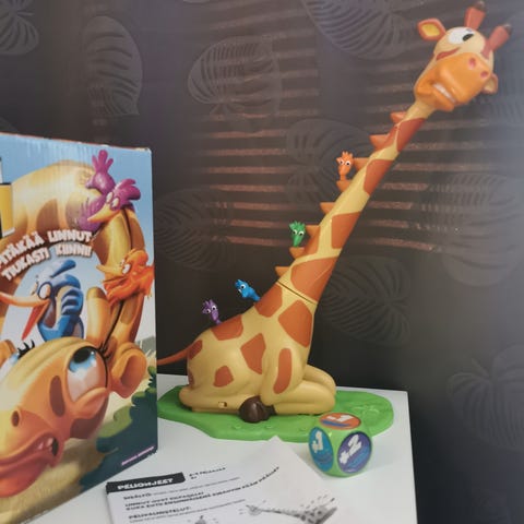 Kiemurteleva kirahvi on hulvaton lastenpeli, jossa kiivetään kirahvin pään päälle! Heitä noppaa ja liikuta lintuasi ylöspäin. Mutta varo! Jos kirahvi häiriintyy, se alkaa kiemurrella tiputtaen linnut alas