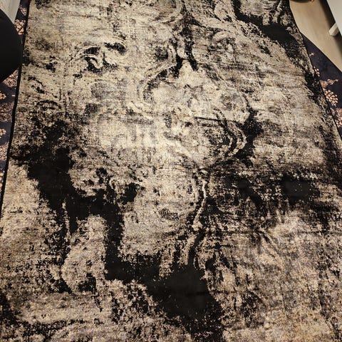 Myydään kaunis harmaa-turkoosi kuviollinen matto. Juuri pesulasta tullut.