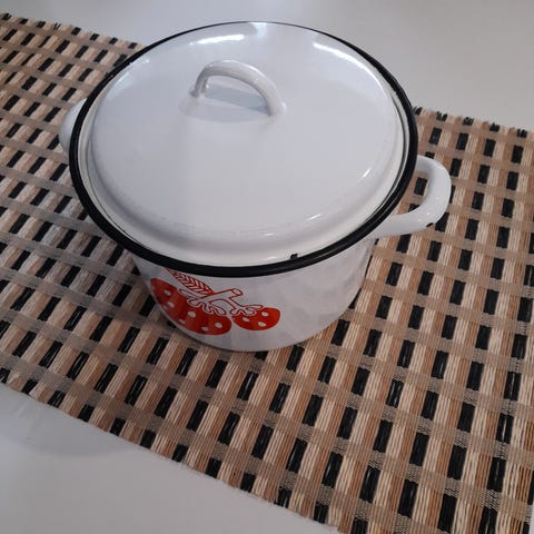 Emalikattila.Valmistusmaa Puola.Kannen kahvassa jälkiä.Nouto Hervannasta.