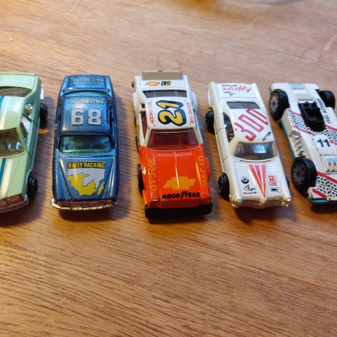Kuvan pikkuautot noin 25 vuotta vanhoja tai enemmän.