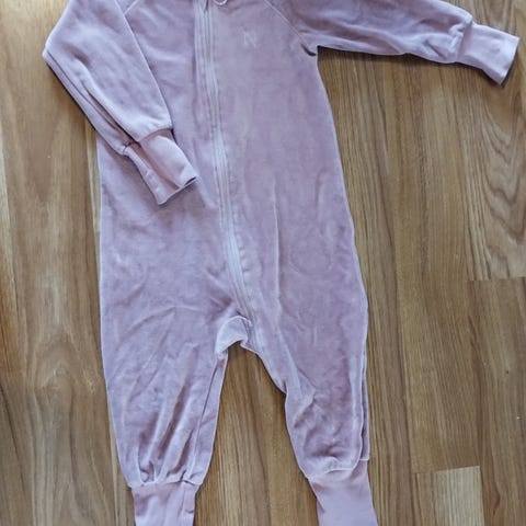 POMPdeLUX ruskeanharmaa velour kokopuku/haalari vetoketjulla ja hupulla. Velour kangas hieman ”karheutunut”. Kokoa 86. Kultaiset yksityiskohdat. Pesty hajusteettomalla pesuaineella. Savuton talous. Koiratalous.