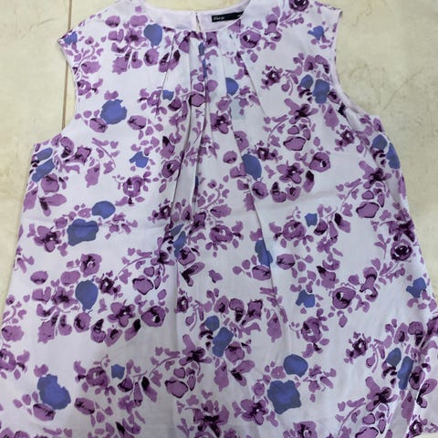 Edessä rypytys kaula-aukossa, hihoissa kuminauhaan. Hyvinlaskeutuvaa kangasta.