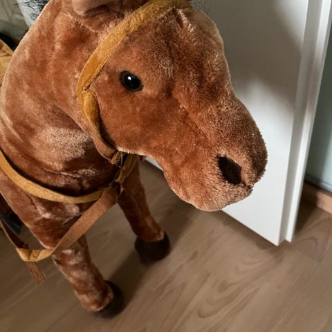 Siisti ja tukeva, hyväkuntoinen lasten leikkihevonen yksisarvinen