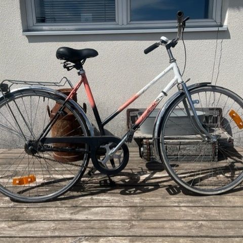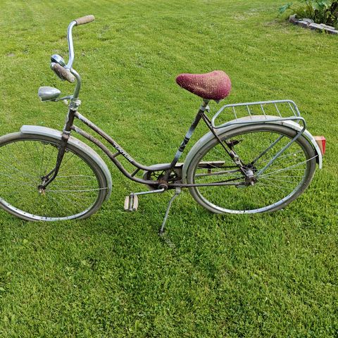 Siitä mummupyörää sitä tarvitsevalle. Takaheijastin ja soittokello on rikki, sekä takavanne vähän vippaa. Muuten ihan soiva peli. Löytyy jopa orkkis avain.