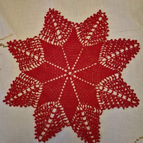 Virkattu pikkuliina. Koko 36 x 36 cm. Väri tummanvihreä.