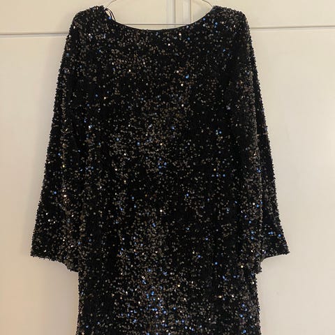 Ralph Lauren mekko sinisenä, Joustavaa materiaalia. Menee sekä s että m kokoiselle. Mekossa on pitkät hihat ja V-pääntie.