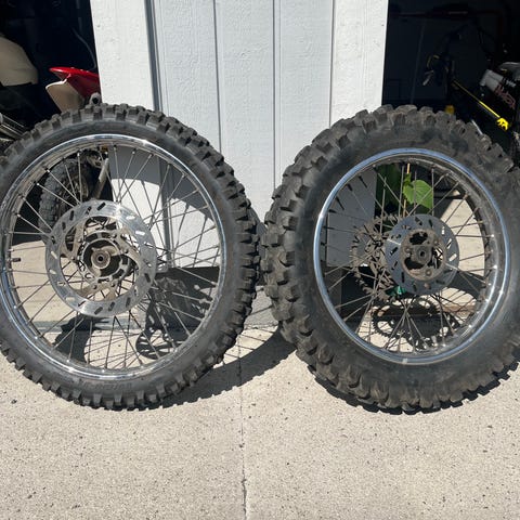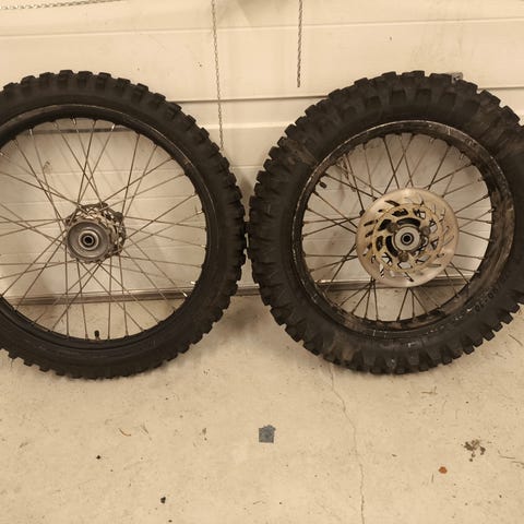 Ei kuvasta näy niin hyvin mutta kiiltävät vanteet ja laakerit ovat vielä hyvät.