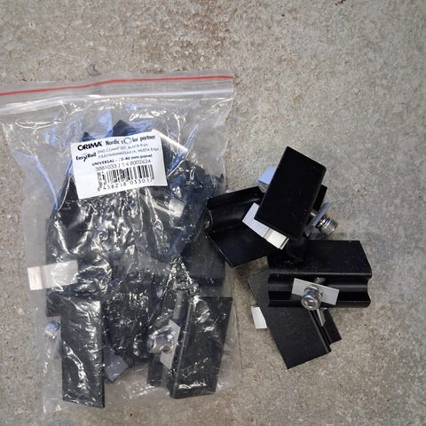 Paljon aurinkopaneeleiden kiskokannakkeita. Orima, wisol ja universaalia 40mm leveälle kiinnityskiskolle (sopii yleisimmät rautakauppojen ja tukkujen kiskot, wurth, toimex, sejo, fisher yms jotka +-2mm 40mm kiskosta. Mustia, hopeita, keskipidikkeitä, päätyjä.