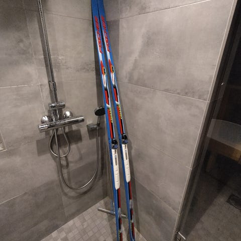 Myydään kahtena talvena hiihdetyt voideltavat perinteisen sukset. Noin 13 kertaa/talvi. Siteet sisältyy hintaan.