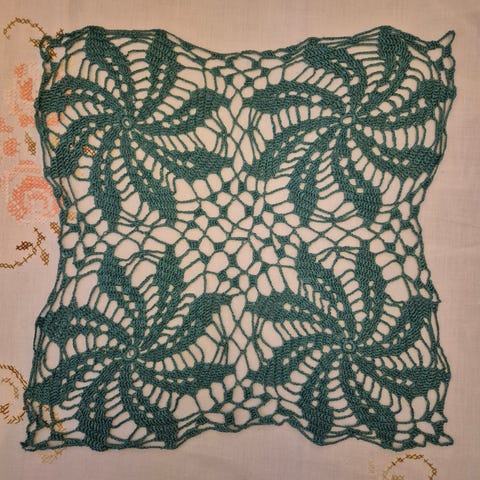 Virkattu pikkuliina. Tummanvihreä Koko 41 x 41 cm.