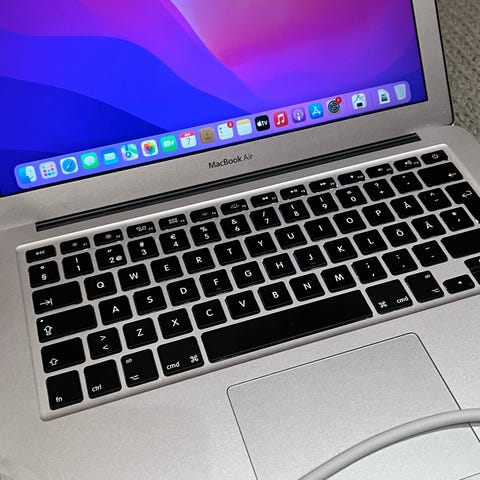 Apple MacBook Air kannettava tietokone, hopeanvärinen.