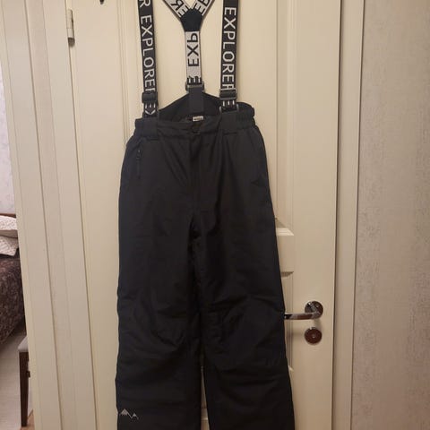 Lämpimät ja korkealla vyötäröllä sekä henkseleillä varustetut lasketteluhousut nuorelle.