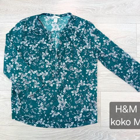 Turkoosi paita, kuvana Madeiran kukat, koko M. Selkäpuolella ei ole kuvia.