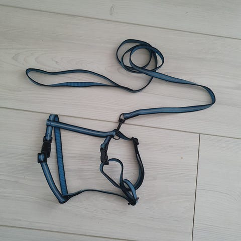 Kaksi kissan talutushihnaa ja. viisi kaulapantaa. Sopivat aikuiselle, keskikokoisille kissalle. Kaikki uudenveroisia.