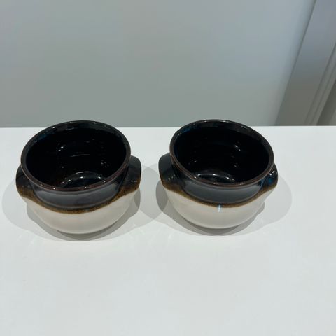 Kermansaven tuotantoa kulhosarja, jossa on 2 kpl vaalean ruskeita kulhoja. Kulhot soveltuvat erilaisiin keittiön käyttötarkoituksiin, kuten pataruoat, , perunat, kiisselit, kylmät jälkiruoat ym, kulhot erikokoisia. Toista kulhoa kerran käytetty ja toinen käyttämätön. Isomman hinta 6€, pienemmän hinta 4€. Myyn myös erikseen.