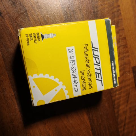 Paketissa avaamattoman pyörän renkaaseen sisäkumi 29’’. 48 millin presta valve ja 0,8 mm thick walls.
