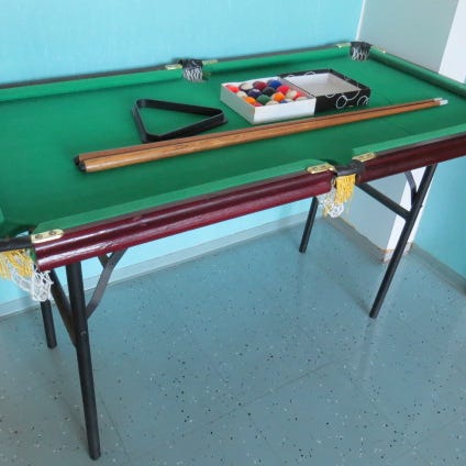 Suomi Biljardipöytä Mini Biljardi, valmistettu puusta. Pöytä on pieni kokoinen ja sopii sisäkäyttöön. Sisältää kaksi keppiä ja biljardipalloja. Väri vihreä pelialueella, kehys puunvärinen.