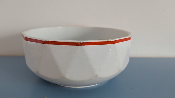 Ei halkeamia. Kermakon suussa hieman alle 1mm iskemä. Sokerikon reunassa 1cm iskemä. Viat näkyy viimeisessä kuvassa. Lautasessa ei iskemiä. Sokerikon ja kermakon pohjassa vielä tarrat paikalla. Lautasessa hieman käyttökulumaa. Kermakossa ja sokerikossa ei siitä jälkiä.