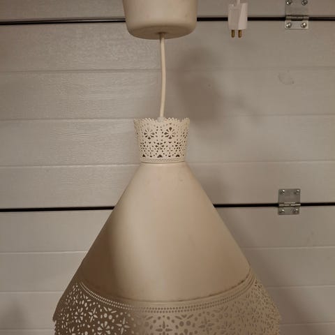 Kaunis metallinen kattovalaisin, jonka voi vaikka koristella eri teemojen mukaan :) Ikeasta joulukuussa ostetut led-lamput sisältyvät hintaan, ja mukaan saa yhden varalampunkin
