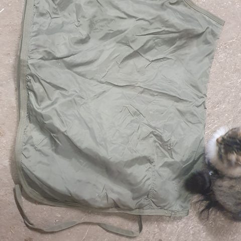 Muutamia kertoja käytetty, mutta vähän likaa kertynyt karvasta. Pesu jää ostajalle.