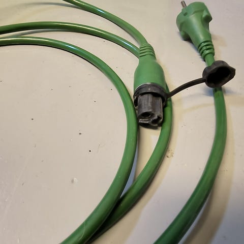 Lohkolämmittimen liitäntäjohto auton ja pistorasian väliin.