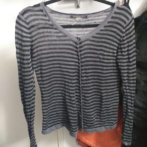 Maison Scotch lämmin neule, akryyliä ja mohairia. Neuleessa mukana helmikaulus, joka on irroitettavissa.