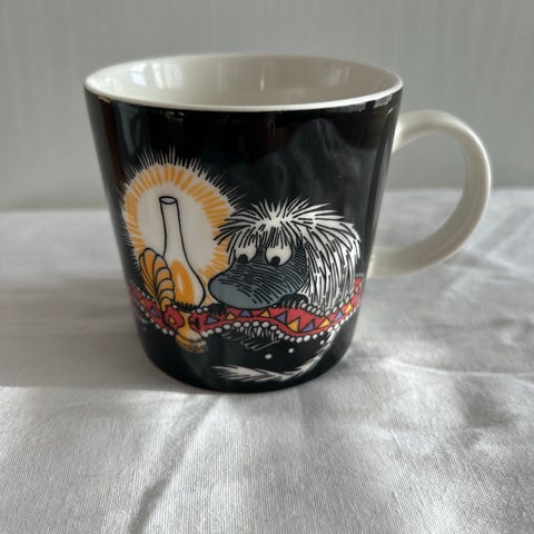 Esi-isä -muki. Tarra kiinni. Nouto Niittymaalta (urheilupuiston metron läheltä) tai postikulut ostajalle. Myyn myös muita muumimukeja.