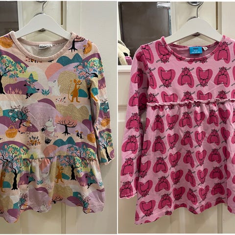 2) vaaleanpunainen metsä-/eläinkuvioinen tunika (Lindex, 110).