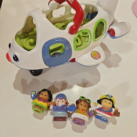 Fisher-pricen lentokone ja liskäksi leijona. Lentokoneesta tulee ääniä ja valot syttyy sivulla. Käytön jälkiä löytyy mutta ei haittaa leikkejä ollenkaan.