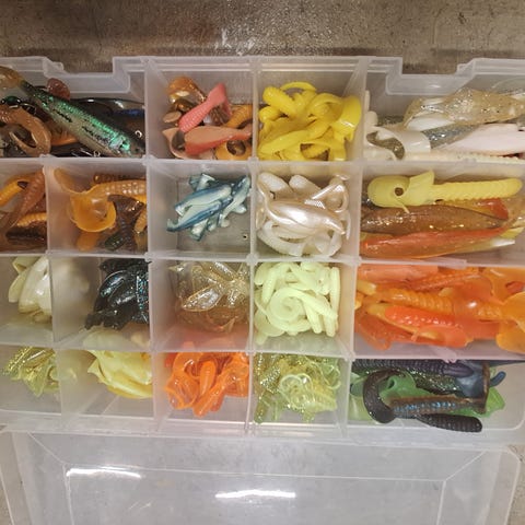 Rasiallinen käytettyjä jigejä. Rasia mukaan.
