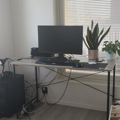 Pöydän takaosassa tehty reikä johtovetoja
