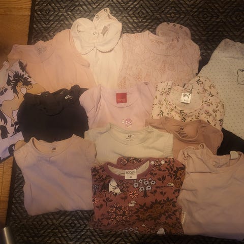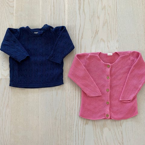 3 h&m neuletta 86/92 kokoisia, yhdessä haalea tahra, jota ei yritetty poistaa. Muuten hyvässä kunnossa. P.o.p.n leggingsit koko 86