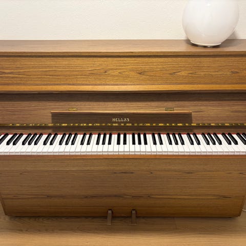 Pystyflyygeli, vaaleanruskea puinen runko, 88 koskettimen näppäimistö ja kolme poljinta. Soveltuu kotikäyttöön ja musiikin harjoitteluun.