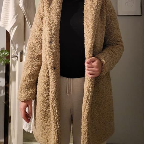 Uusi beige teddytakki. Ainoastaan sovitettu muutaman kerran ja jäänyt käyttämättä kaappiin. Ei vuorta.
