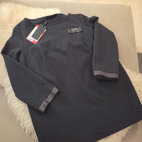 Eden Rose Fashion juhlapusero. Edessä kaksikerroksinen kangas. Alla musta ja päällä harmaa/hopea kirjailu. Hihan suussa ja helmassa mustaa pitsiä. Kauluksessa helmiä. Takaa musta. Koko pieni M.