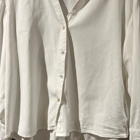 Naisten Valkoinen kauluspaita, ohutta läpinäkyvää kangasta.
