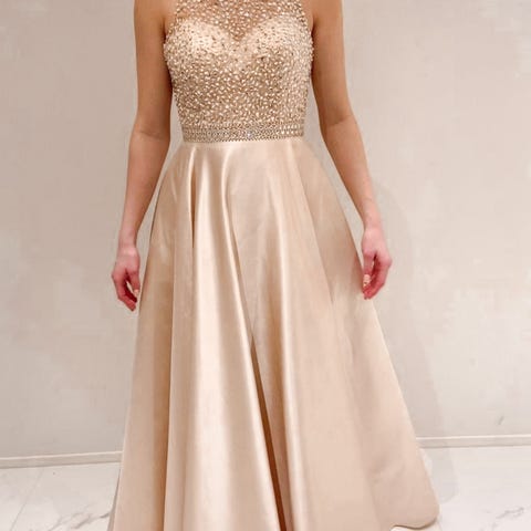 Zazabellasta 2025 ostettu vanhojentanssimekko koossa 32. Ihanan kimalteleva samppanjaväri. Ovh. 599€ + 100€ (vannehame ja pukupussi). Takana nyöritys joka antaa joustavuutta koon kannalta. Olen noin 168 cm ja helmanpituus on 110 cm. Tanssin tennareilla. Kimaltelevan kankaan alareunassa yksi kohta joka repesi ja se on korjattu nyt huomaamattomaksi teipillä (viimeinen kuva). Muuten huippukunnossa! Mukaan saa myös vannehameen ja pukupussin.🤍Lisäkuvia saa pyytää ja vastaan mielelläni myös lisäkysymyksiin. Mekkoa voi tulla sovittamaan!