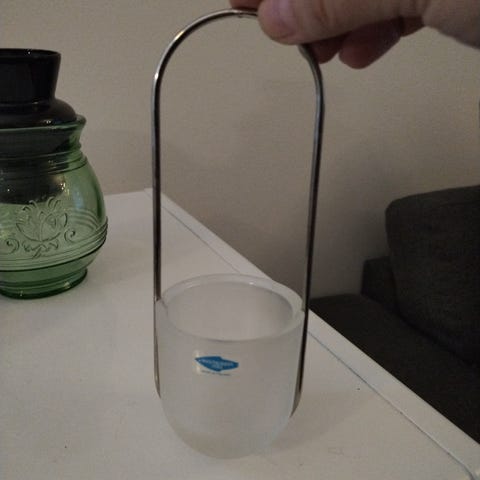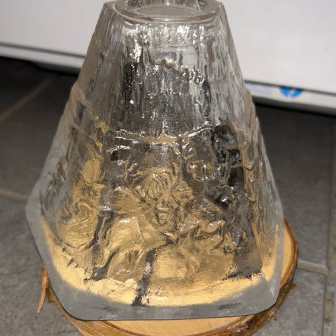 Aslak lasikota, sisältää alustan ja lankayelineen tuikulle. On myös kaunis jos laittaa sisälle led-valonauhan. Lasin korkeus n. 14,5cm. Pohjan halkaisija 18cm.