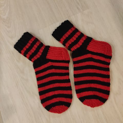 Käsin neulotut villasukat, koko 35. Punainen Musta