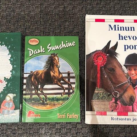 Ruth Fergusonin kirjoittamat Lauran ponitalli ja Ratsastuskilpailut -kirjat. Sopivat lukemiseksi hevosista ja ratsastuksesta kiinnostuneille.