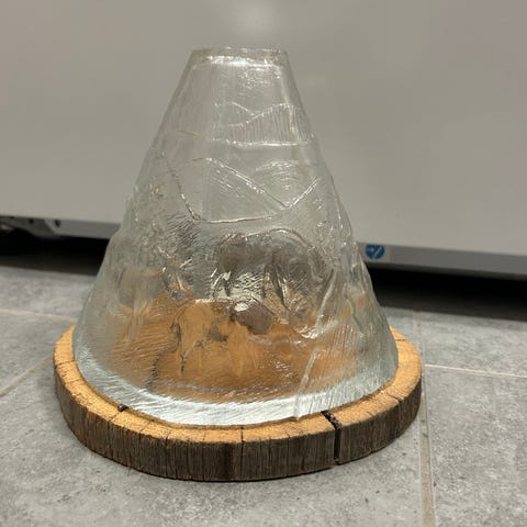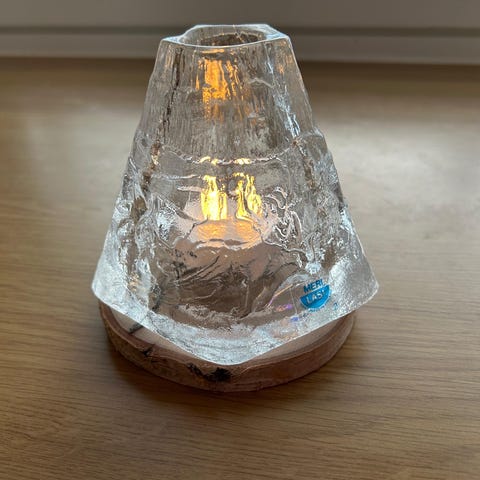 Aslak pieni lasikota. Kota on n. 9.5cm korkea. Pohjan halkaisija n. 11cm. Postitus tai nouto Keravalta tai Vantaalta.